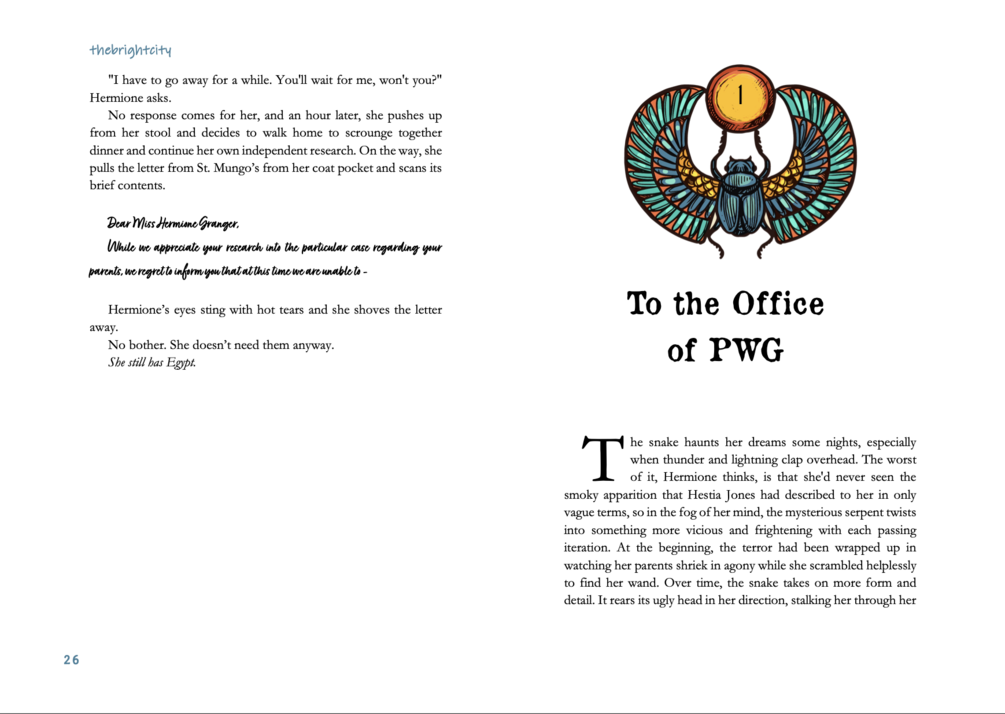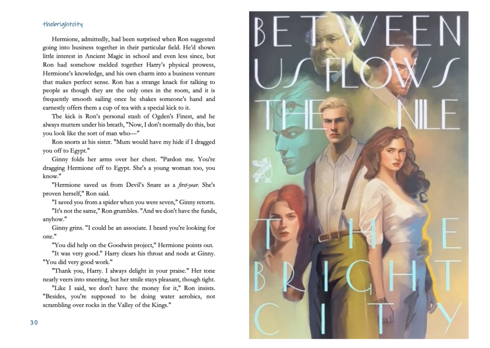 The year is 1931. Egyptomania has taken Great Britain by storm, and the Wizarding World is no exception. Potter, Weasley, Granger & Associates, a fledgling archaeology firm in Diagon Alley, accepts an assignment to find the location of an ancient spellbook rumored to be hidden somewhere along the great Nile River.