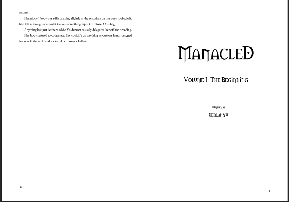 The characters in this story belong to JK Rowling, whom the author happen to not be. The initial inspiration of this plot occurred when watching the first episode ofThe Handmaid’s Tale. In homage there are elements of it maintained throughout the story. The title High Reeve was drawn from Lady_of_Clunn’s use in her story Uncoffined.